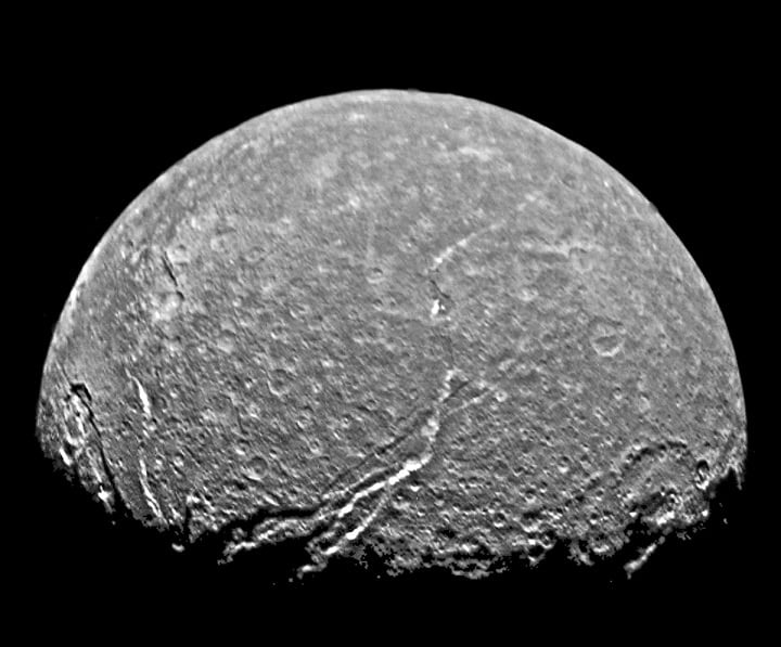 Voyager 2 image of Titania's southern hemisphere. Credit: NASA/JPL