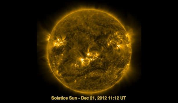 This beautiful image from the Solar Dynamics Observatory provides a view of our Sun on the solstice (winter solstice for the northern hemisphere and summer solstice for the southern hemisphere,) at 11:12 UTC, December 21, 2012. No killer solar flares, no apocalypse, just pure beauty and the life-giving light and warmth from Old Sol.