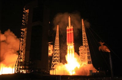 [/caption]On Saturday, very little was known about the mammoth payload a Delta IV Heavy was carrying into space. Launching from Florida's Cape Canaveral Air Force Station, the 70 metre-high rocket blasted into the atmosphere with a mystery satellite known only as the