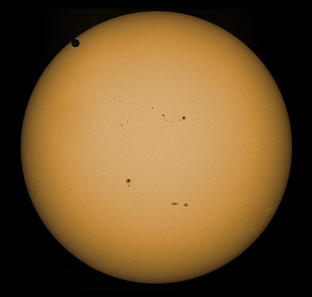 [caption id="attachment_95657" align="aligncenter" width="580" caption="Venus Transit and a few Sunspots, through passing clouds. Taken with Canon XTi/400D and hand-held Baader filter. Credit: Tavi Greiner. "]