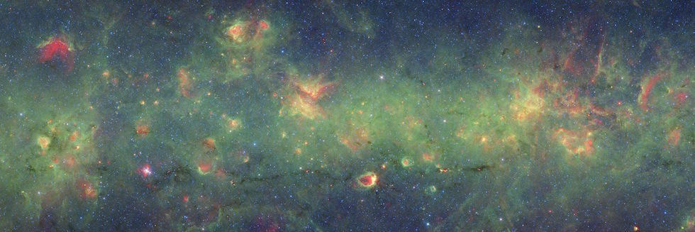 A star gets started when gravity pushes the material in the cloud together to form a hot core. Temperatures and pressures rise, and eventually, a star is born. The Nessie Nebula is actually dense enough to form many very high-mass stars, according to Jackson. "By high mass, I mean a star that's about 8 times the mass of the Sun, or more," he said. "They have so much more energy than the Sun, and they inject this energy into the surrounding material, and they form these H II bubbles that ionize the gas around them."