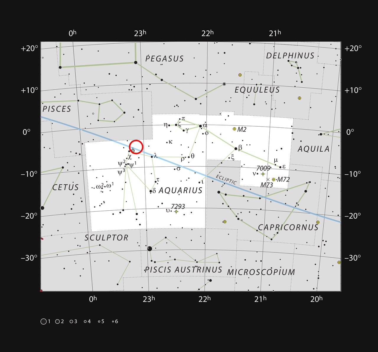 This chart shows the naked eye stars visible on a clear dark night in the constellation of Aquarius with the position of the Trappist-1 system (Credit : ESO/IAU and Sky & Telescope)