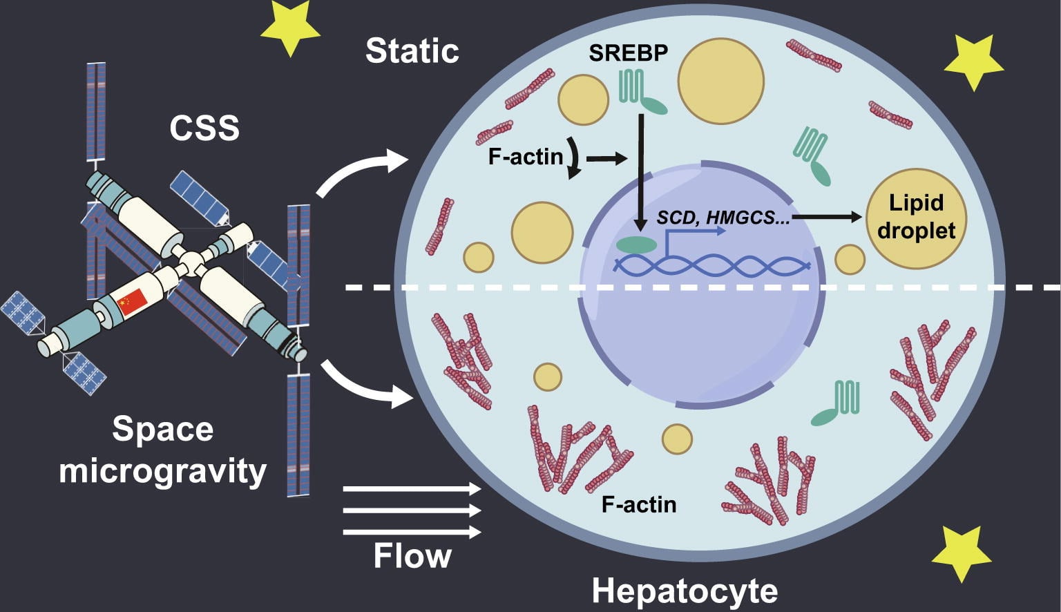 The results further indicate that SREBPs have potential as therapeutic targets for maintaining liver health during long-duration space missions. In addition, analysis of the samples upon their return to Earth showed that shear flow exerted a protective effect, partially mitigating lipid dysregulation. In short, the tests demonstrated a means to monitor liver function in space while offering a mitigation strategy for future missions.