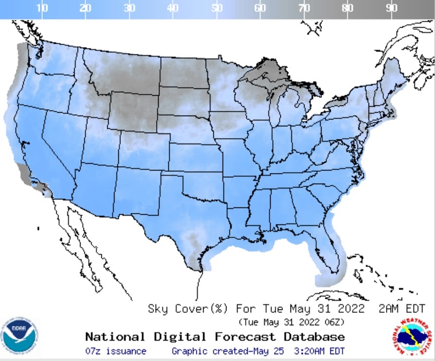 As of writing this, cloud cover prospects for the contiguous United States look to be mostly favorable. It might be worth checking out the action on NASA’s all-sky meteor camera network if you're clouded out.