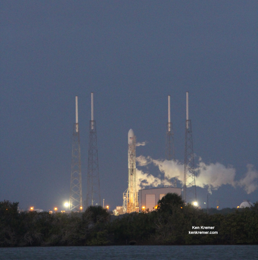 Next Generation SpaceX Falcon 9 rocket with SES-8 communications satellite awaits launch from Pad 40 at Cape Canaveral, FL. Credit: Ken Kremer/kenkremer.com[/caption]