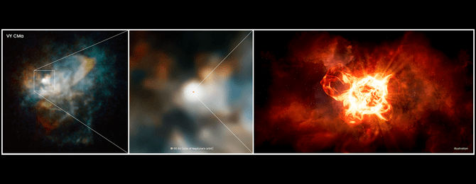 The disappearance of a star can take many forms. It could go supernova. It could turn into a black hole. Or it could just fade away quietly. Sometimes, the last of these is actually the most interesting to observe. That is the case for one of the largest stars ever found - VY Canis Majoris, a red supergiant approximately 3840 light years away in the Canis Major constellation.