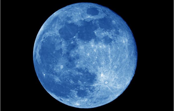 A blue-tinted Moon on August 31, 2012. Credit (and tinting):
