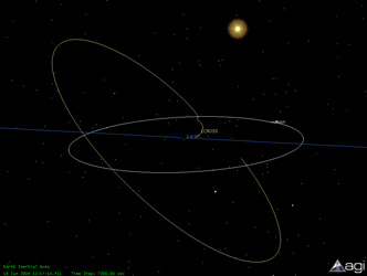 [/caption] On Tuesday morning, the LCROSS spacecraft will fly by the Moon only 9,000 km above the lunar surface and send back live streaming video for about an hour. This relatively close encounter with the Moon, will help put LCROSS in the correct position to impact the lunar surface in October. LCROSS will never actually be lunar orbit, but is working its way to an elongated Earth orbit which will eventually bring it to the correct orientation for meeting up with the south pole of the Moon later this year. LCROSS will search for water ice on the moon by sending the spent upper-stage Centaur rocket to impact part of a polar crater in permanent shadows. The LCROSS spacecraft will fly into the plume of dust left by the impact and measure the properties before also colliding with the lunar surface. Live video streaming of the flyby begins at approximately 12:20 GMT (8:20 EDT) on Tuesday, June 23, 2009.
