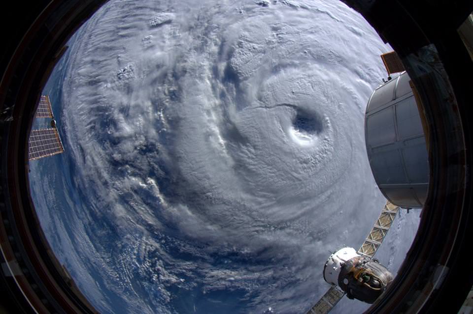 (ISS) as he observes the monster storm swirling below on our Home Planet.