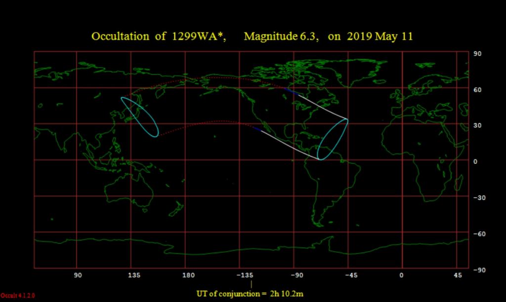 Key occultations for North America include about half a dozen +6 magnitude stars, including the brightest star in the cluster, the +6th magnitude wide double Epsilon Cancri. The passage is centered on 11PM EDT(Eastern Time)/3:00 Universal Time (May 11th), but exact occultation timings will vary due to lunar parallax versus observer location. The International Occultation Timing Association (IOTA) has a campaign page for the M44 event, along with grazing predictions across North America.