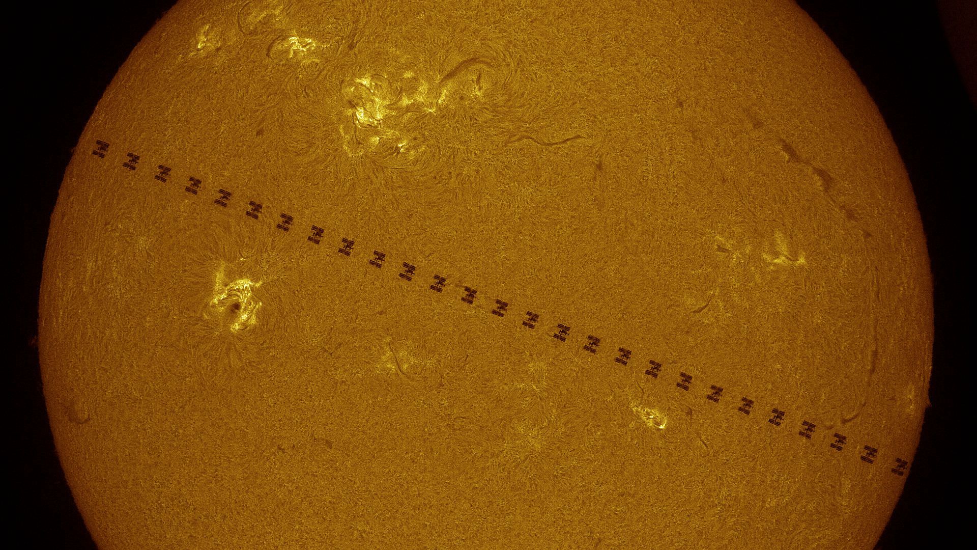 . He captured images of the International Space Station transiting in front of the Sun in September 2014, and visible in the images are several of the visiting docked spacecraft (at one point in September there were