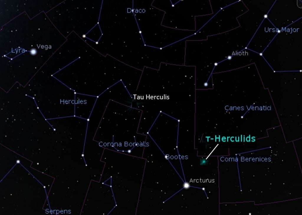 Fast-forward to 2022, and models show that things could get interesting later this month. Comet 73P lays down a stream known as the Tau Herculid meteors. The shower takes its name from its 1930 radiant position near the +3.9 magnitude star Tau Herculis, though in modern times, the radiant has drifted into the adjacent constellation of Boötes the Herdsman.