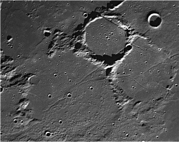 As the very first to be mapped by the U.S. Geological Survey, the area around Kepler contains many smooth lava domes reaching no more than 30 meters above the plains. According to records, in 1963 a glowing red area was spotted near Kepler and extensively photographed. Normally one of the brightest regions of the Moon, the brightness value at the time nearly doubled! Although it was rather exciting, scientists later determined the phenomenon was caused by high energy particles from a