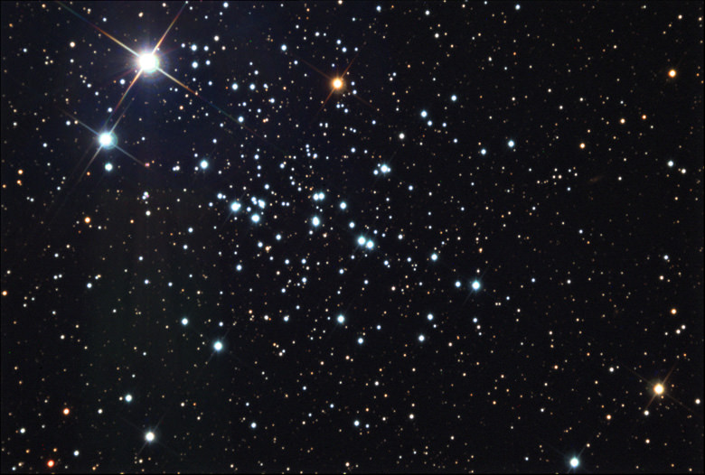 Absolutely one of the finest of rich galactic opens bordering on a loose globular, NGC 7789 has a population of about 1000 stars and spans a mind-boggling 40 light-years. At well over a billion years old, the stars in this 5000 light-year distant galactic cluster have already evolved into red-giants or super-giants. Discovered by Caroline Herschel in the 18th century, this huge cloud of stars has an average magnitude of 10, making it a great large binocular object, a superb small telescope target, and a total fantasy of resolution for larger instruments.