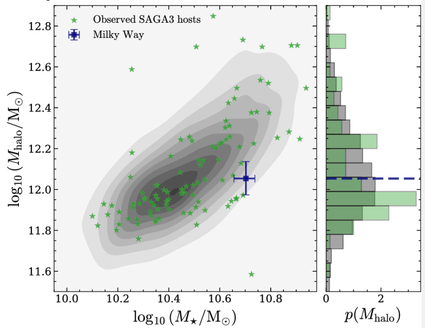 SAGA found that the number of satellites per galaxy ranges from zero to 13. According to the first paper, the mass of the most massive satellite is a strong predictor of the abundance of satellites. "One-third of the SAGA systems contain LMC-mass satellites, and they tend to have more satellites than the MW," the paper states. The Milky Way is an outlier in this regard, which is one reason it's atypical.