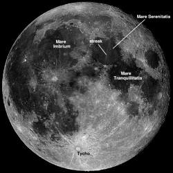 Even though the Moon is very bright when full, try using colored or Moon filters to have a look at the many surface features which throw amazing patterns across its surface. If you have none, a pair of sunglasses will suffice. Look for things you might not ordinarily notice - such as the huge streak which emanates from crater Menelaus. Look at the pattern projected from Proclus - or the intense little dot of little-known Pytheas north of Copernicus. It's hard to miss the blinding beacon of Aristarchus! Check the southeastern limb where the edge of Furnerius lights up the landscape...or how a nothing crater like Censorinus shines on the southeast shore of Tranquillitatis, while Dionysus echoes it on the southwest. Could you believe Manlius just north of central could be such a perfect ring - or that Anaxagoras would look like a northern polar cap?