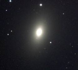 First discovered in 1779 by J. G. Koehler while studying a comet, this 11th magnitude elliptical galaxy was observed and labeled by Messier who was just a bit behind him. Much denser than our own galaxy, M59 is only about one-fourth the size of the Milky Way. In a smaller telescope, it will appear as a faint oval, while larger telescopes will make out a more concentrated core region.