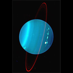 Uranus and its faint ring system which was discovered this week in 1977. Image credit: NASA/JPL.