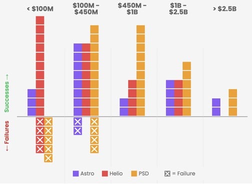 *Graph showcasing the different missions in the different cost and science categories, including the failures. Credit - A.H.D. Koeppel & C. Dreier*