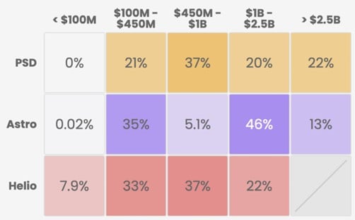 *Table of the percentage of “high-impact” papers for each mission type and cost category. Credit - A.H.D. Koeppel & C. Dreier*
