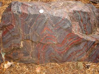 The research team, led by Kurt Konhauser of the University of Alberta in Edmonton, analyzed the trace element composition of sedimentary rocks known as banded-iron formations, or BIFs, from dozens of different localities around the world, ranging in age from 3,800 to 550 million years. Banded iron formations are unique, water-laid deposits often found in extremely old rock strata that formed before the atmosphere or oceans contained abundant oxygen. As their name implies, they are made of alternating bands of iron and silicate minerals.