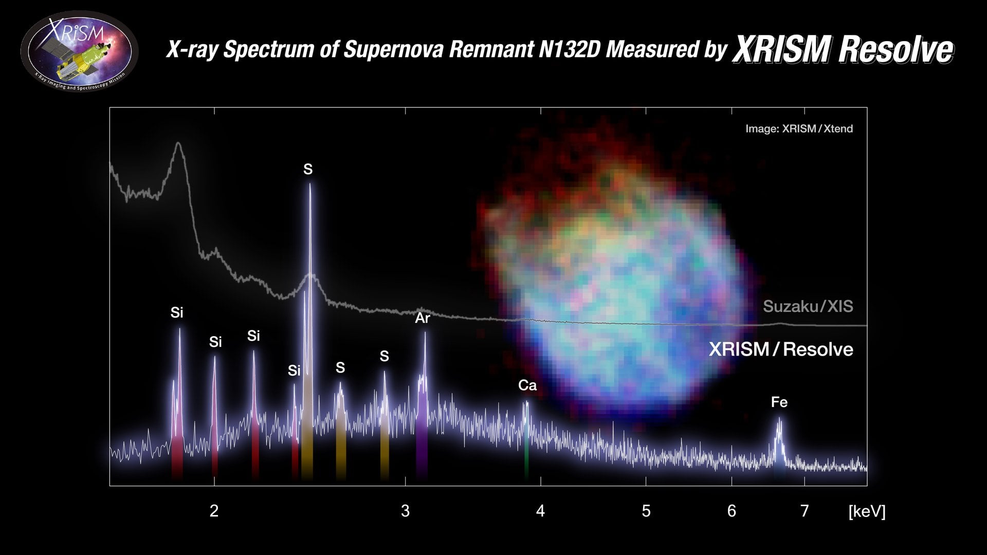 *Peaks in the XRISM/Resolve indicating the presence of certain elements. Credit: XRISM/JAXA*